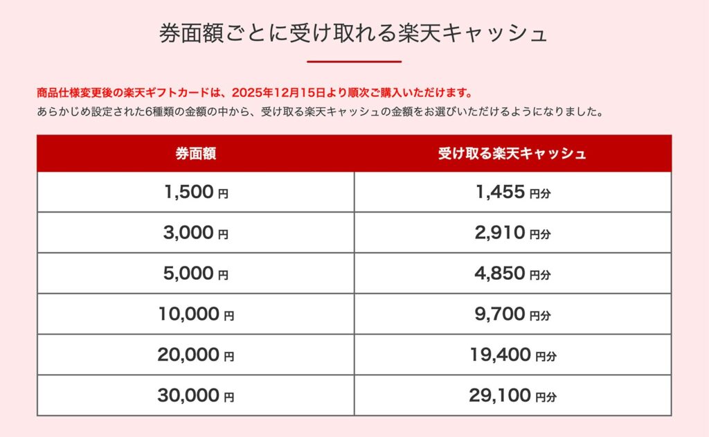なんと、ミニストップなどのコンビニエンスストアで購入できる「楽天ギフトカード」に、購入金額に対して3%の実質的な手数料が発生することが決まったようです。