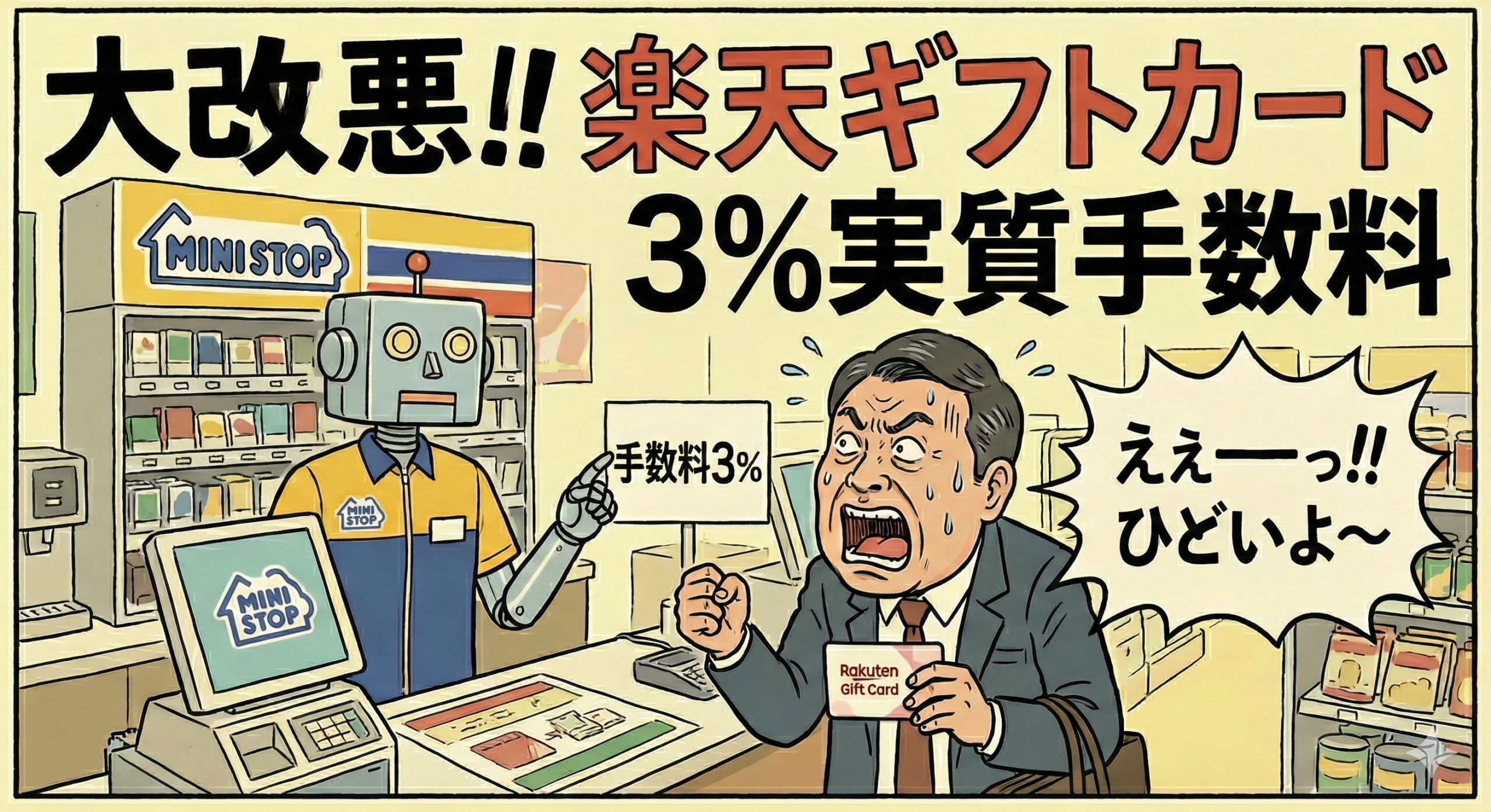 なんと、ミニストップなどのコンビニエンスストアで購入できる「楽天ギフトカード」に、購入金額に対して3%の実質的な手数料が発生することが決まったようです。